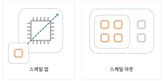 리소스 조정하여 수요 많을때는 스케일아웃, 수요 감소하면 스케일인